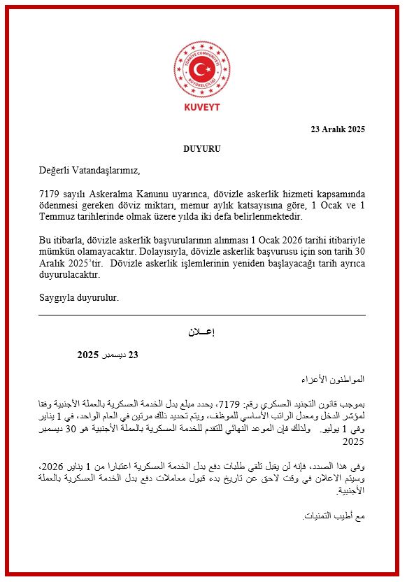 Dövizle Askerlik Başvurularının Geçici Olarak Durdurulacağına İlişkin Duyuru
